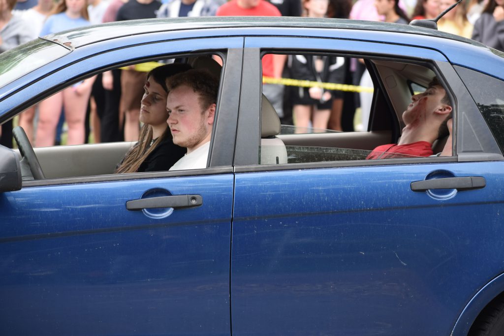 A mock car crash caused by driving while intoxicated was carried out at Harmon Field for students in grades 9-12, followed by a mock trial in the auditorium. At the end of the presentation, Herkimer Police Chief Michael Jory encouraged students to not put anyone in the position to have to deal with a similar scenario happening for real.